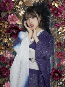 実際に振袖を着た人のリアルな姿、コーディネートの雰囲気、前撮りの空気感。