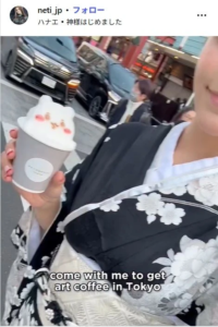 ネトーチカは振袖姿で浅草周辺を散策する様子をInstagramに投稿。日本らしい風情ある街並みと、彼女のスタイルが融合した映像は、まさに“映え”の極みといえる仕上がりとなっている。