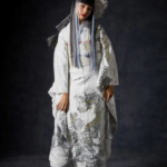 屋外撮影では黒が重く見えるため、白小物を足すとバランスが整う
