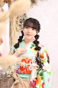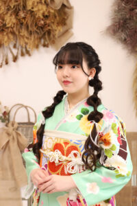 鮮やかでポップな色合いが可愛い振袖。