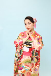 また、司会者の個性に合わせて、小物のコーディネートも行われ、帯や帯締め、髪飾りなども振袖と絶妙に調和しています。これにより、和の伝統を感じつつも現代の感覚にマッチするスタイリッシュな着物姿が完成します。