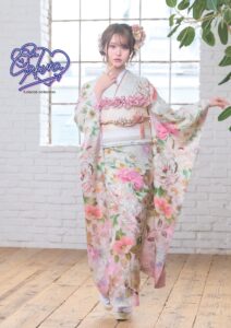 SAKURA着用モデルは、ピンク振袖の魅力を最大限に引き出したスタイルです。