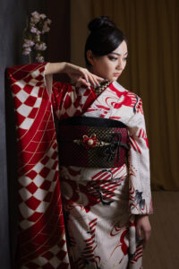 レトロ系振袖!!紅白の鶴がカッコ良すぎる振袖!!