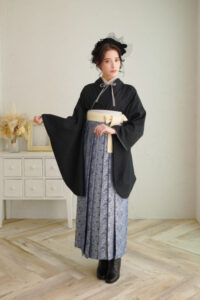 このような小物の変更だけでも、現代風のコーディネートになります。