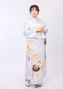 くすみカラーの振袖は「大人っぽさ」「柔らかさ」「写真映え」をバランスよく満たす色として、那覇でも人気の高い色です。